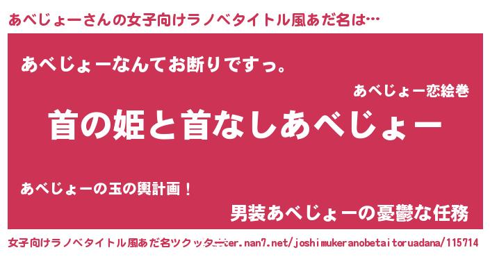 | 男性向けラノベタイトル風あだ名 | 『はたらくあべじょーさま!』 |