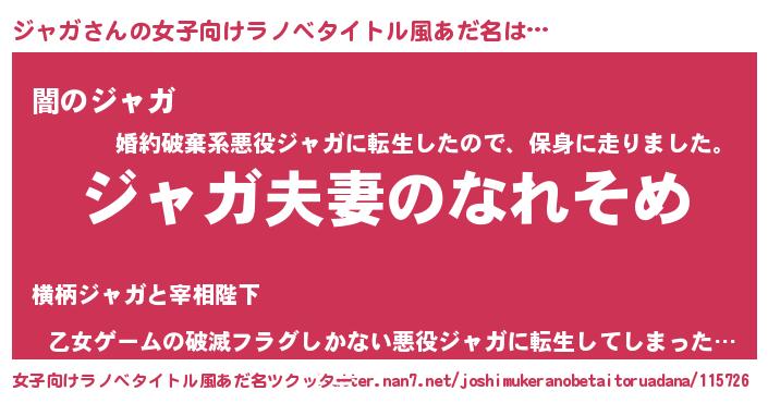 | ヘコむあだ名 | 『ジャガ(小並感)』『ジャっふぃ~』 |