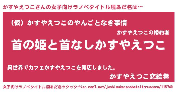 | 男性向けラノベタイトル風あだ名 | 『はたらくかすやえつこさま!』 |