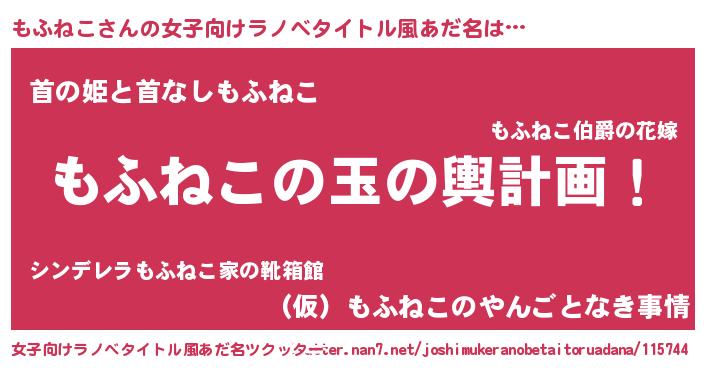 | ヘコむあだ名 | 『もふにー』『牛乳』『もふねこ(笑)』 |