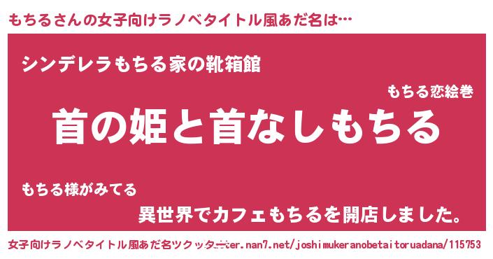 | 男性向けラノベタイトル風あだ名 | 『はたらくもちるさま!』『緋弾のモチル』 |