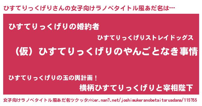 | 胡散臭い通販商品みたいなあだ名 | 『必ず成功する水晶球…その名も「ひすてりっくげり」』 |