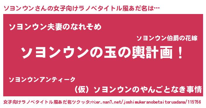 | 男性向けラノベタイトル風あだ名 | 『転生したらソヨンウンだった件』 |