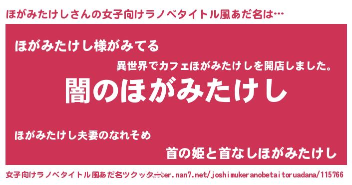 | 意味不明あだ名 | 『自称ほがみたけし』 |