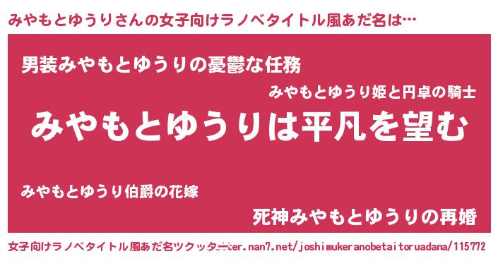 | 胡散臭い通販商品みたいなあだ名 | 『信頼と実績のネックレス…その名も「みやもとゆうり」』 |