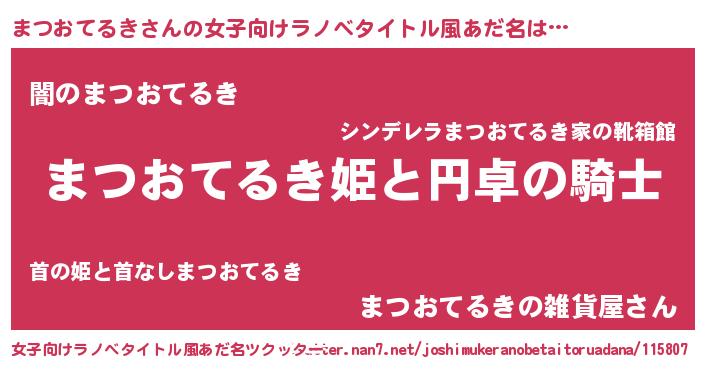 | 男性向けラノベタイトル風あだ名 | 『まつおてるきの憂鬱』 |