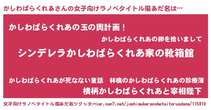 | 意味不明あだ名 | 『たけのこ科かしわばらくれあ属』 |
