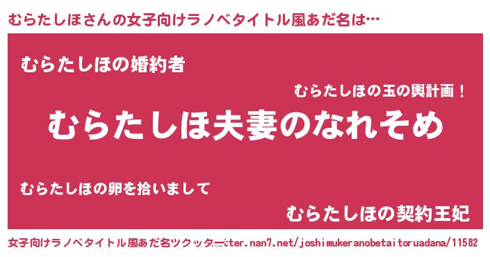 | 肩書あだ名 | 『むらたしほ助教授』『むらたしほ大統領』 |