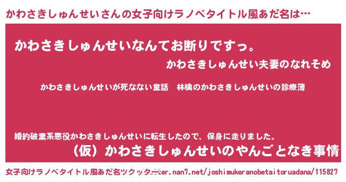 | 恥ずかしいあだ名 | 『カワサキシュンセイデラックス』 |