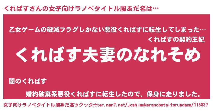| 男性向けラノベタイトル風あだ名 | 『おまえをオタクにしてやるから、俺をくればすにしてくれ! 』 |
