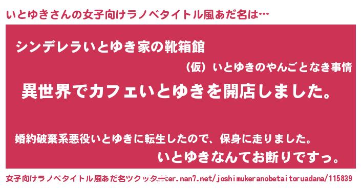 | 男性向けラノベタイトル風あだ名 | 『誰もが恐れるあのいとゆきが、ぼくの専属メイドになるようです。』 |