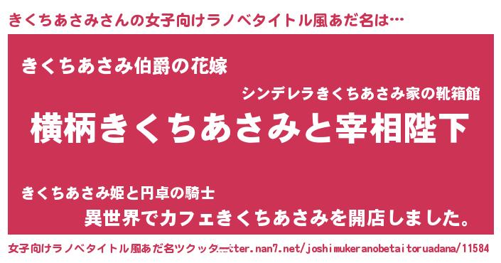 | 男性向けラノベタイトル風あだ名 | 『きくちあさみに滅ぼされるだけの簡単なお仕事です』 |