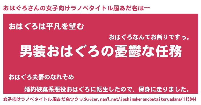 | ヒーロー風カッコイイあだ名 | 『幻影騎士オハ』『超時空戦士オハグロ』 |