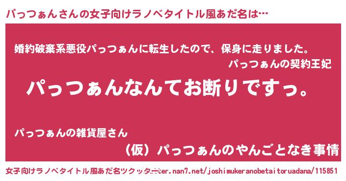 | ヘコむあだ名 | 『パっふぇ~』『パっつぁん(震え声)』 |
