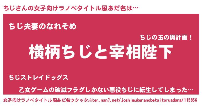| 男性向けラノベタイトル風あだ名 | 『ちじに滅ぼされるだけの簡単なお仕事です』 |