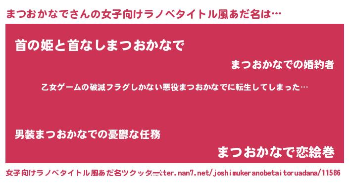 | 男性向けラノベタイトル風あだ名 | 『この素晴らしい世界にまつおかなでを!』 |