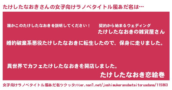 | 男性向けラノベタイトル風あだ名 | 『転生したらたけしたなおきだった件』 |