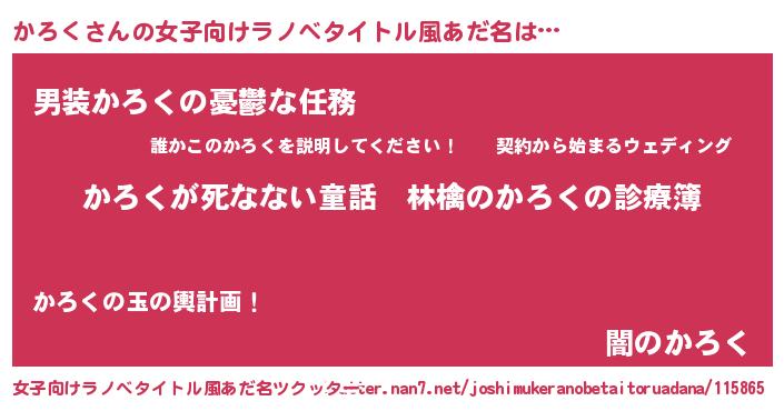 | 男性向けラノベタイトル風あだ名 | 『魔弾の王とかろく』 |