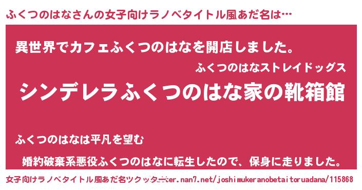 | 胡散臭い通販商品みたいなあだ名 | 『絶対に幸福をもたらす水素水…その名も「ふくつのはな」』 |