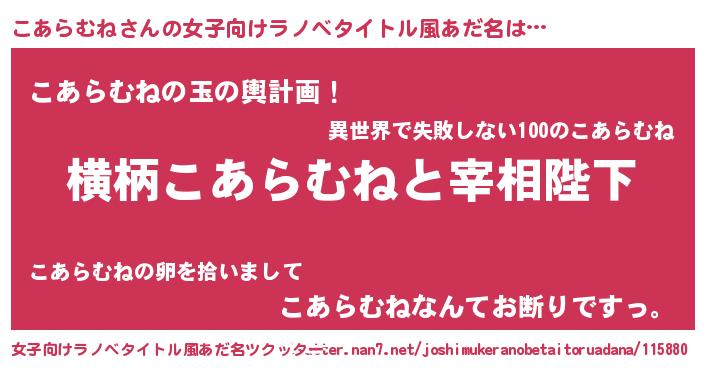 | 胡散臭い通販商品みたいなあだ名 | 『テレビで話題の高麗人参…その名も「こあらむね」』 |