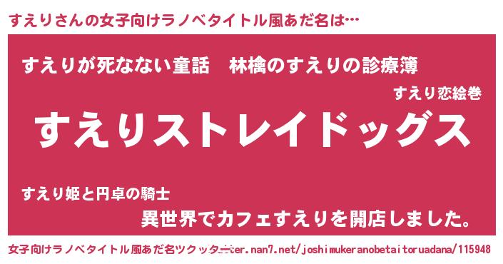 | 男性向けラノベタイトル風あだ名 | 『Re:すえりから始める異世界生活』 |