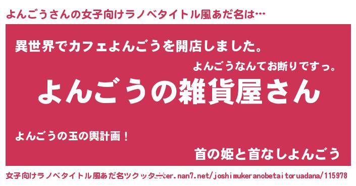 | 男性向けラノベタイトル風あだ名 | 『やはりよんごうの青春ラブコメはまちがっている 』 |