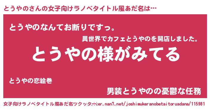| ヘコむあだ名 | 『とう太郎』『とうやの(笑)』 |