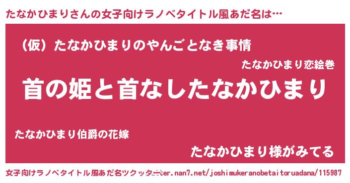 | 男性向けラノベタイトル風あだ名 | 『はたらくたなかひまりさま!』 |