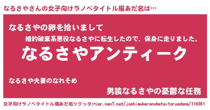 | 男性向けラノベタイトル風あだ名 | 『魔法科高校のなるさや』 |