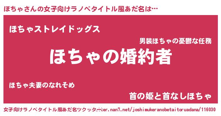 | 胡散臭い通販商品みたいなあだ名 | 『運命の人と巡り会える高級そうな壺…その名も「ほちゃ」』 |