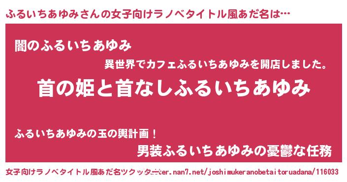 | 肩書あだ名 | 『ふるいちあゆみプロデューサー』 |