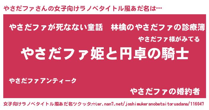 | ファンタジー風あだ名 | 『ヤサフェル』『ヴァルヤサーナ』 |