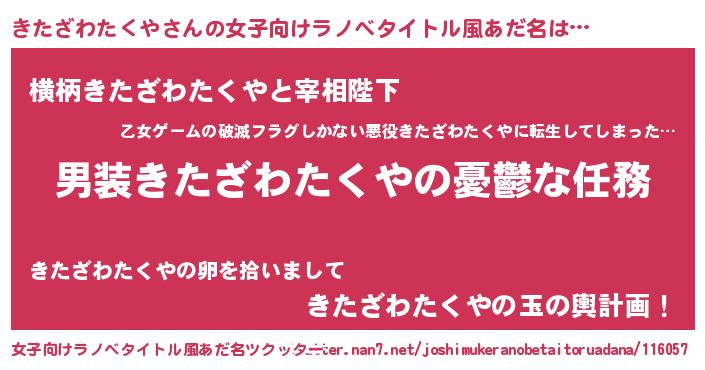 | 男性向けラノベタイトル風あだ名 | 『うちのきたざわたくやが世界を掌握している!』 |