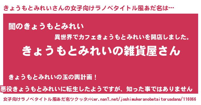 | 男性向けラノベタイトル風あだ名 | 『やはりきょうもとみれいの青春ラブコメはまちがっている 』 |