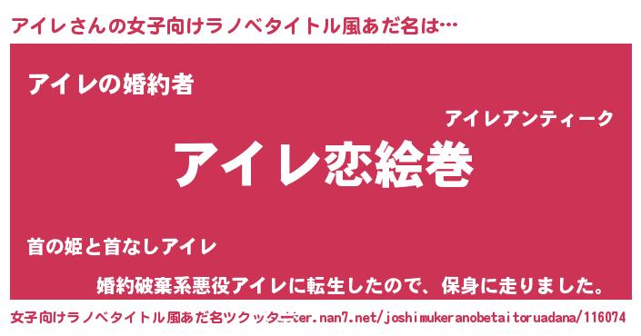 | 男性向けラノベタイトル風あだ名 | 『ノーゲーム・ノーアイレ』 |