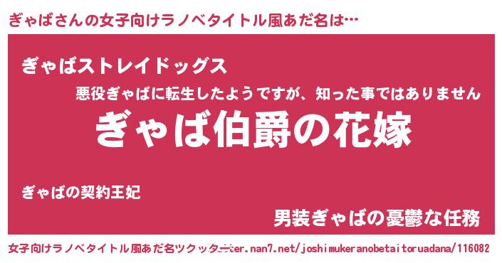 | 男性向けラノベタイトル風あだ名 | 『やはりぎゃばの青春ラブコメはまちがっている 』 |