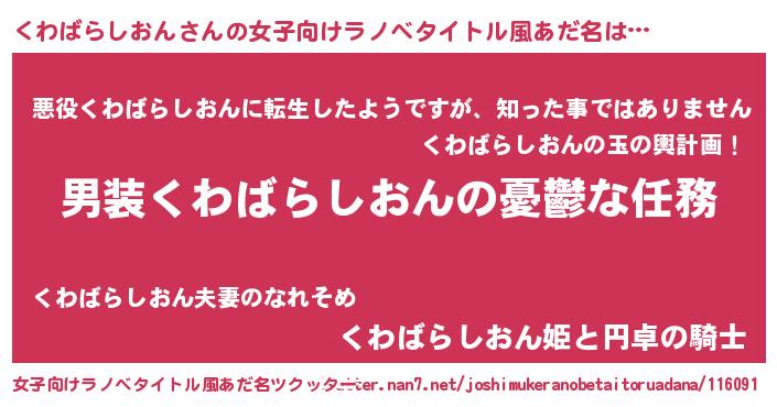 | 男性向けラノベタイトル風あだ名 | 『冴えないくわばらしおんの育てかた』 |