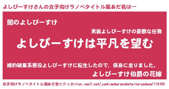 | 男性向けラノベタイトル風あだ名 | 『ダンジョンによしぴーすけを求めるのは間違っているだろうか』 |