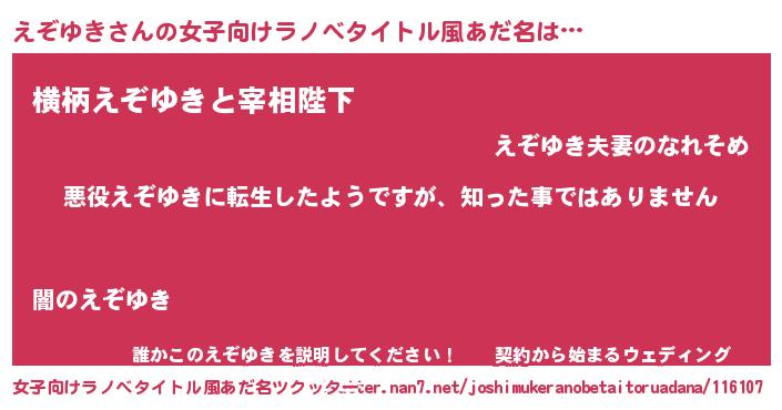 | 男性向けラノベタイトル風あだ名 | 『この素晴らしい世界にえぞゆきを!』 |