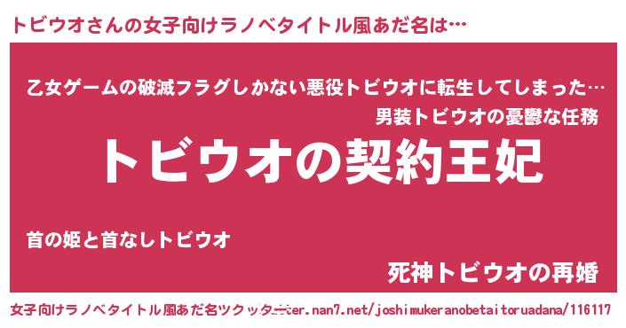 | 胡散臭い通販商品みたいなあだ名 | 『来世でも幸せになれる健康食品…その名も「トビウオ」』 |