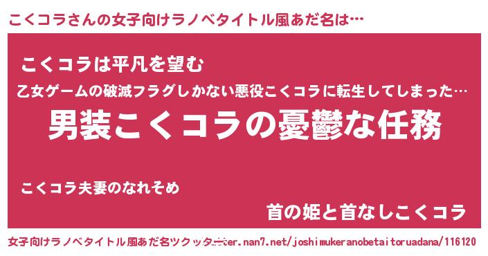 | 男性向けラノベタイトル風あだ名 | 『冴えないこくコラの育てかた』 |