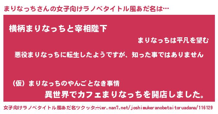 | 男性向けラノベタイトル風あだ名 | 『この素晴らしい世界にまりなっちを!』 |