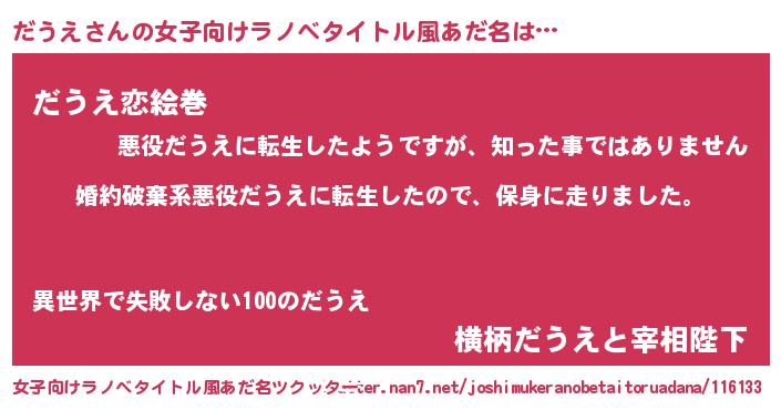 | 男性向けラノベタイトル風あだ名 | 『ダウエスレイヤー』 |