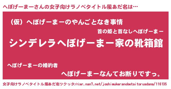 | 意味不明あだ名 | 『ペロリンへぼげーまー』 |