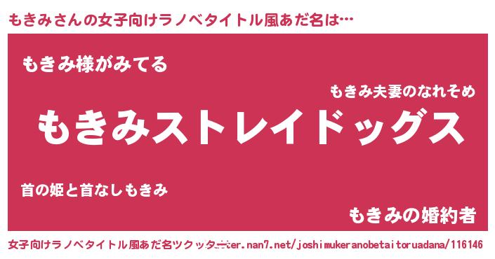 | 男性向けラノベタイトル風あだ名 | 『Re:もきみから始める異世界生活』 |