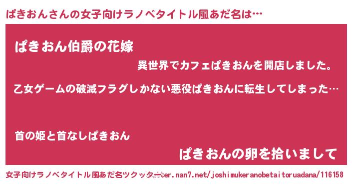 | 意味不明あだ名 | 『住所不定無職ぱきおん(53歳)』 |