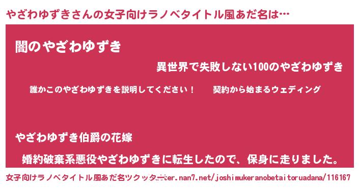 | 男性向けラノベタイトル風あだ名 | 『ヤザワユズキアートオンライン』 |