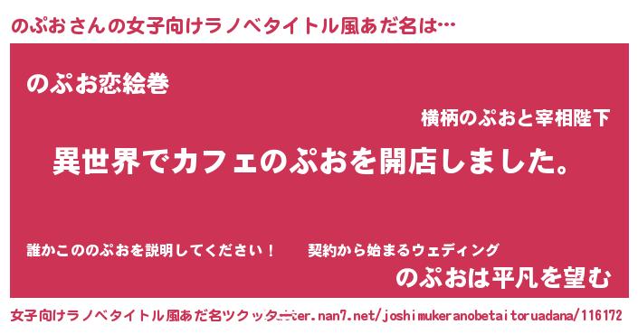 | 男性向けラノベタイトル風あだ名 | 『誰もが恐れるあののぷおが、ぼくの専属メイドになるようです。』 |
