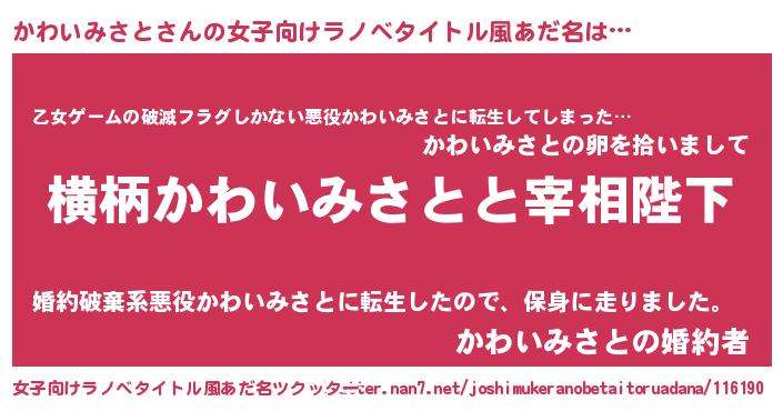 | 男性向けラノベタイトル風あだ名 | 『かわいみさとに滅ぼされるだけの簡単なお仕事です』 |