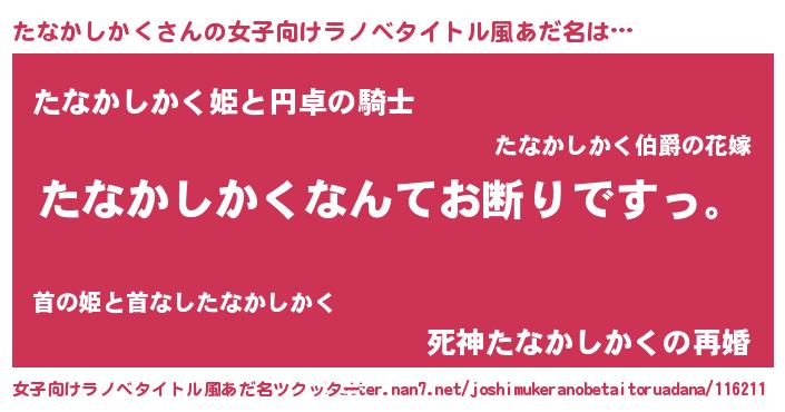 | 意味不明あだ名 | 『自称たなかしかく』 |